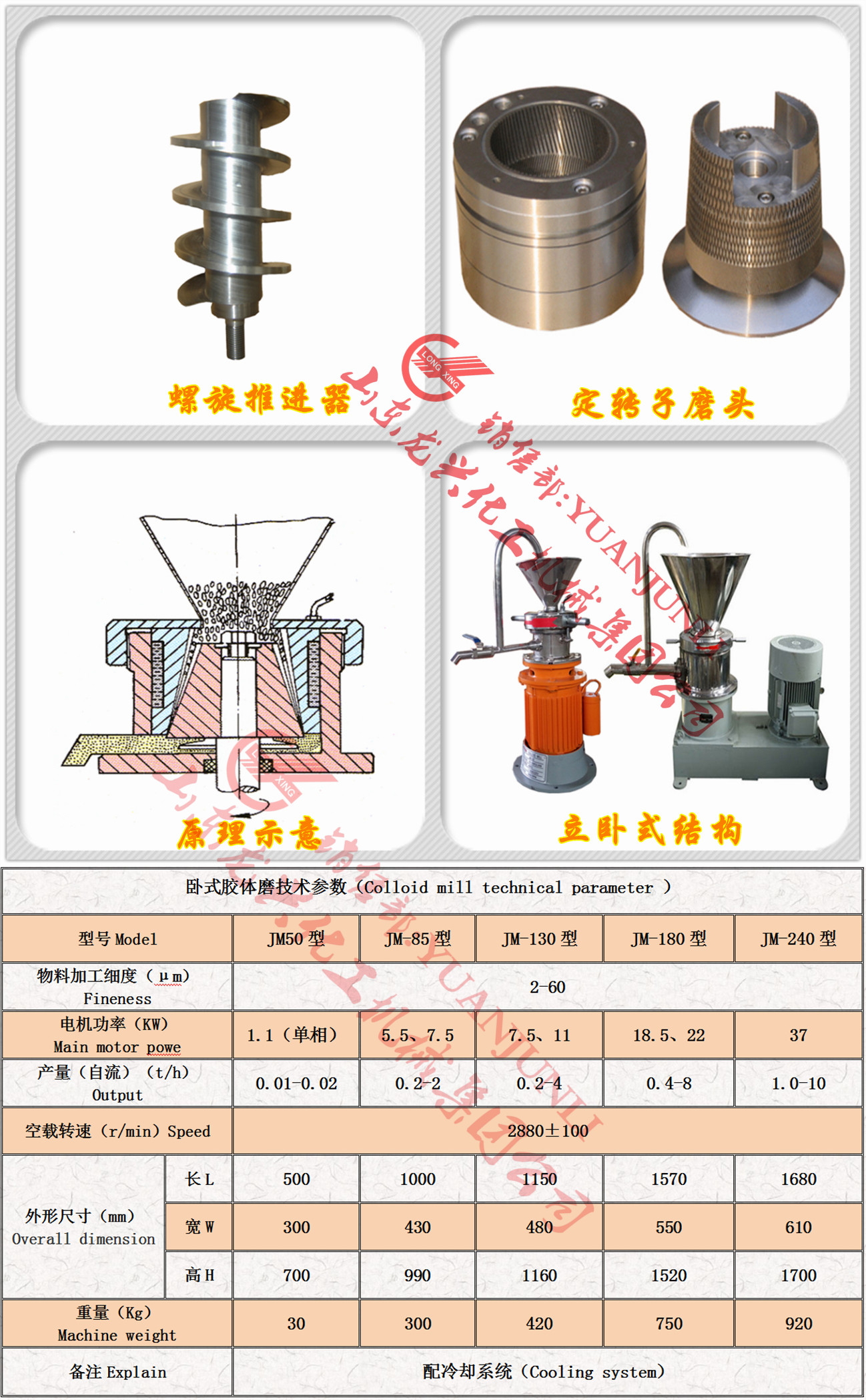 膠體磨機(jī)是濕式超微粒加工的第二代新型設(shè)備,適用于各類乳狀液的均質(zhì)、乳化、分散、混合、粉碎、研磨。廣泛應(yīng)用在食品(果漿、果汁、蛋白奶、豆奶、奶茶、乳制品,飲料等)、制藥(各型糖漿、營(yíng)養(yǎng)液、中成藥、膏狀藥劑等)、日用化工(牙膏、化妝品、洗滌劑等)、化工(顏料、染料、涂料、潤(rùn)滑油、石油催化劑等)、乳化瀝青、煤炭浮選劑、陶瓷軸料、納米材料等行業(yè)。