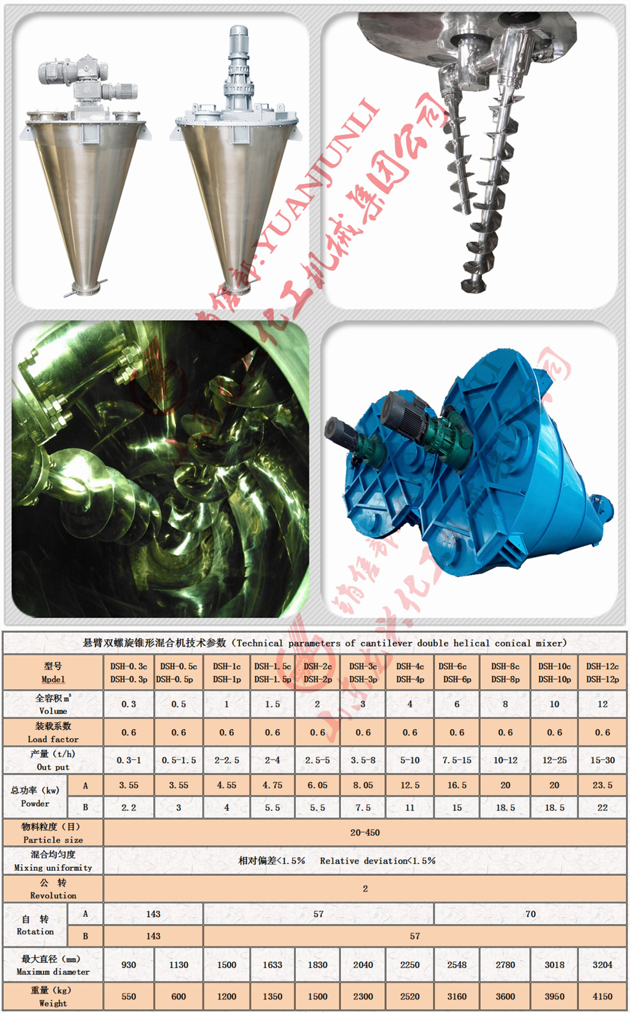 雙螺旋錐形混合機廣泛用于化工、陶瓷粉末、nong藥、染料、食品、色料、釉料、飼料、建材、稀土等粉體與粉體(固—固)的混合。這類化工機械對混合物料適應性廣,對熱敏性物料不會產生過熱,對顆粒物料不會壓饋和磨碎,對比重懸殊和粒度不同的物料混合不會產生分屑離析現象。該機是一種高效的對流混合機.它能夠溫和地混合產品,在不損壞物料的前提下保證高精度的混合.雙螺旋錐形混合機應用于溫和攪拌與出料無殘留效果要求的混合裝配.此外,這種混合機還能起臨時混合的中間儲存作用.此種混合機適用于粉體,漿料,晶體,粒狀或團狀粉體以及配合加液的攪拌工藝.