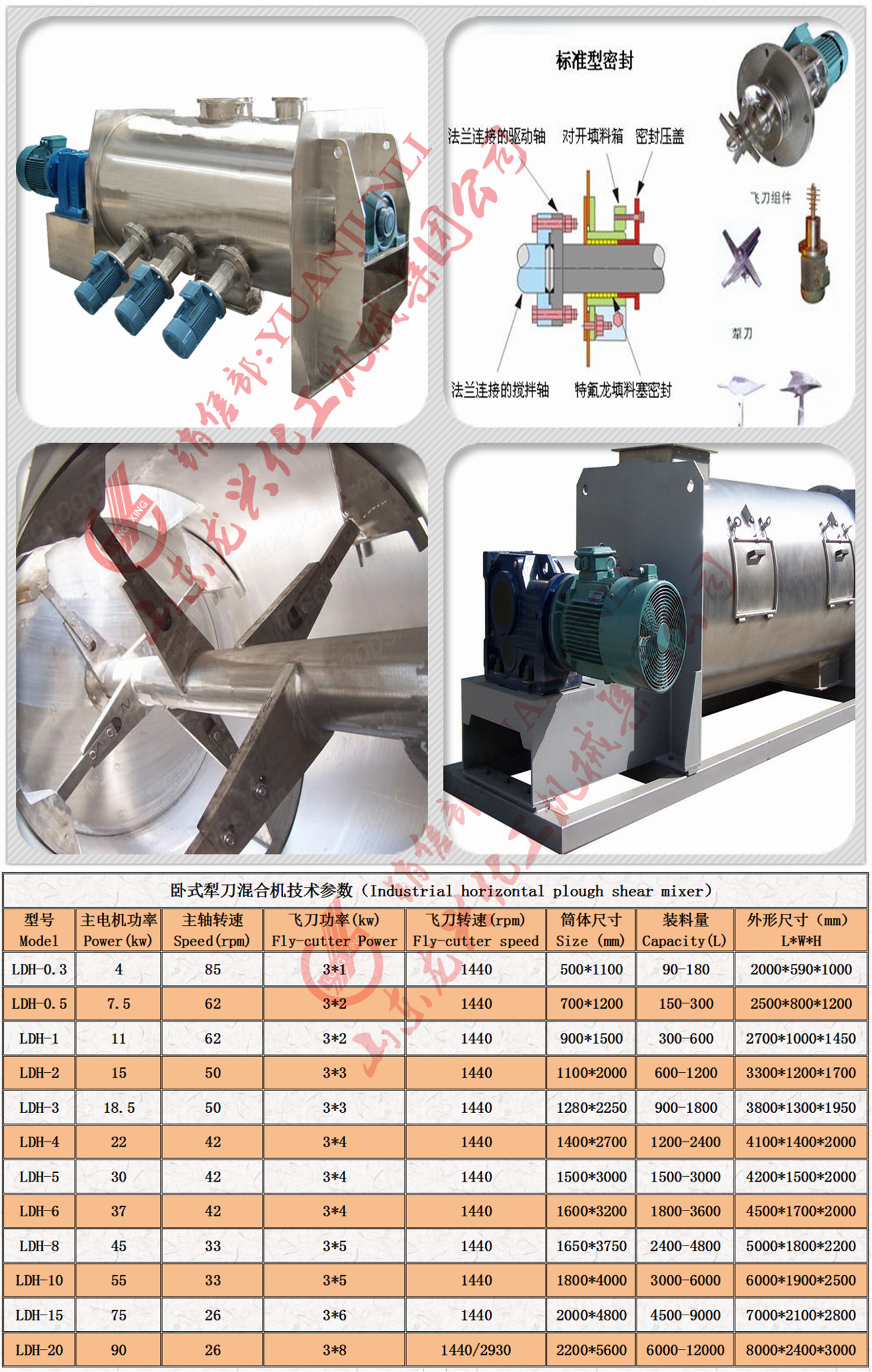 臥式犁刀混合機廣泛應用于化工、涂料、醫藥、食品、飼料、燃料、冶金、礦山等行業的固-固(即粉體內添加液體)混合,以及濕造粒、干燥、濃縮等復合工藝。犁刀混合機是一種新型、高效的粉體混合機,主要針對纖維類物料含量大、混合過程中噴霧量較大(噴霧量33%以內)的應用場合設計。該機混合時間短,對粒度、比重差異較大的物料混合有較好的適應性,特別適合噴霧混合和造濕粒(0.3-3mm),可以根據生產需要增加噴霧裝置(噴霧量33%以下)、保溫干燥夾套。該產品適用與粉體與粉體、粉體與液體、粉體與顆粒的混合,該機具有高速飛刀分散作用,物料在犁頭和飛刀的雙重作用下能較短時間內達到均勻混合,特別針對粉體與膏狀材料、粉體與纖維材料的混合攪拌,是一款高效率、高均勻度、高粉碎、低能耗、低污染的新型混合設備,特別適應與自動配料系統、自動包裝系統的配合生產使用。