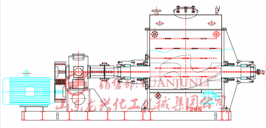 螺桿擠出部分實現了工作中反轉運轉,實現了精細化的攪拌過程,正轉實現了快速出料的目的;傳動系統由電動機、減速機和齒輪組成,實現了大扭矩的動力輸出,動力經齒形軸器傳輸出到快漿軸上,使其達到規定的轉速,也可由變頻器進行調速。另外該型設備的具體細節配置可根據用戶工藝靈活搭配。