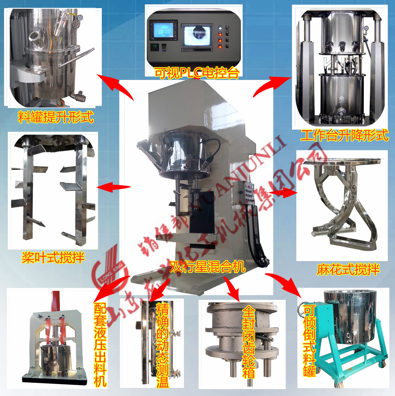 山東龍興集團是江北優秀的膏體混合攪拌機設備大型集團化生產企業,幾十年來我公司致力于系列不銹鋼真空型雙行星混合攪拌機、雙行星動力混合攪拌機、多功能強力分散攪拌機、同心雙軸混合攪拌機及配套的提升式液壓自動給出料機等設備的開發設計與制造;根據使用工況不同有電加熱、蒸汽加熱、導熱油加熱等不同加熱形式供您選型,山龍興集團銷售部長原君禮現真誠為您推薦5-2000L系列真空型雙行星動力混合攪拌機,歡迎您和微信(手機同號)咨詢!